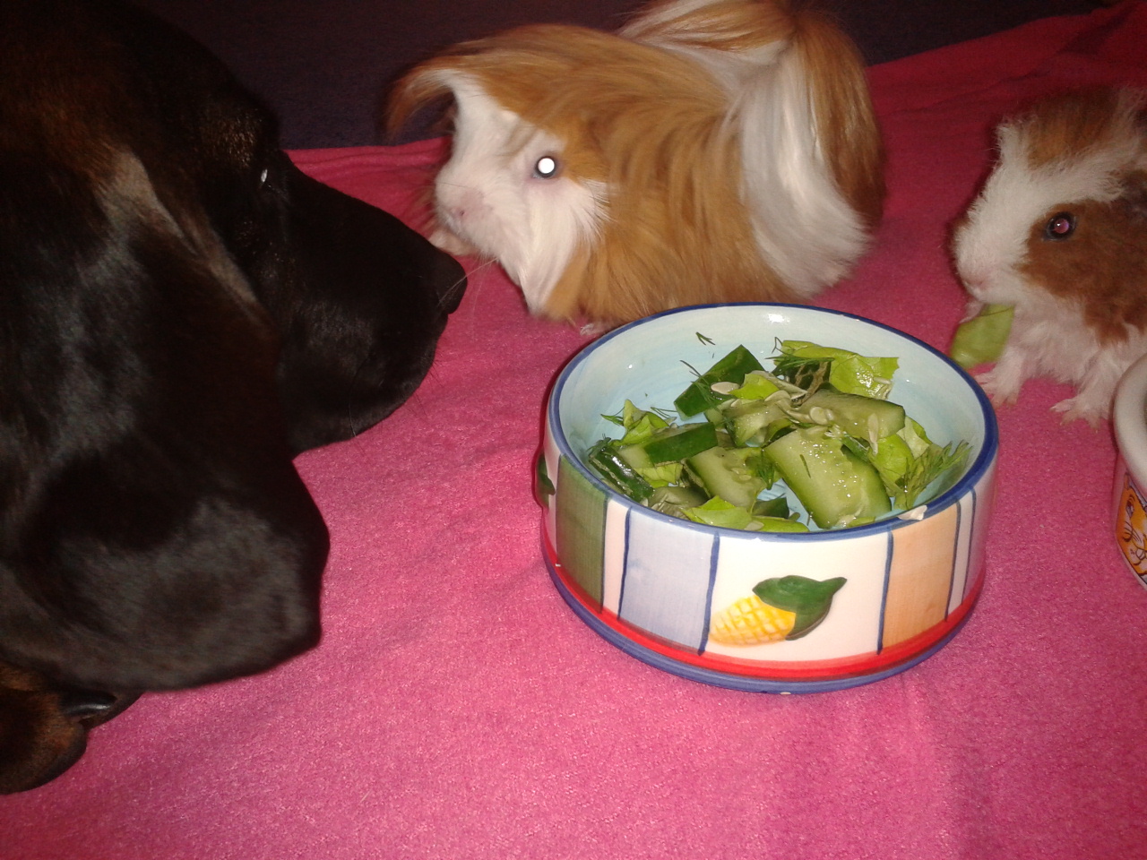 nawet nasza suczka Brenda przyglądała się dziewczynkom jak smacznie pałaszują sałatkę