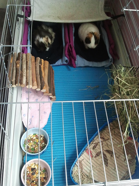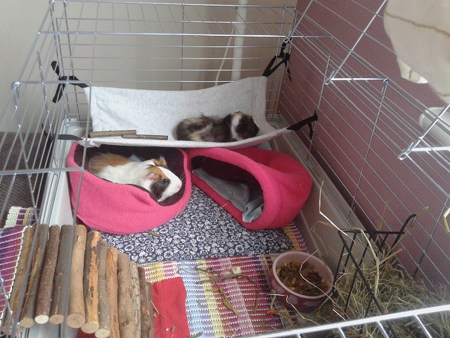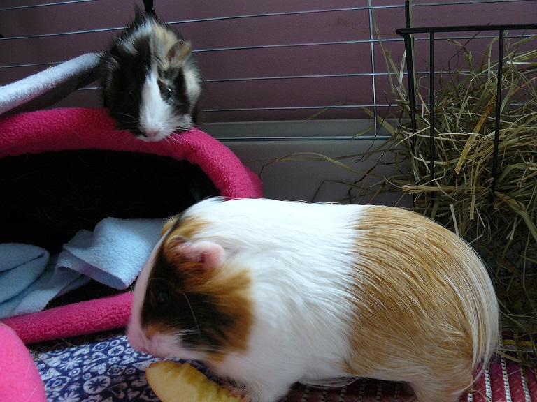 Troszkę nowych zdjęć. Świnki rosną i wzdłuż i wszerz :tooth: Nutka często ustawia małą po kątach ale Lusi chyba to nie przeszkadza. Jest wpatrzona w starszą koleżankę jak w obraz. Robi dokładnie to samo, co starsza, chodzi krok w krok za Nutką zamieniając się wtedy w jej ogon :lol: