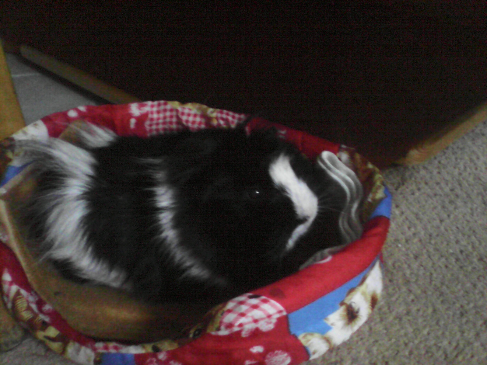 Śliczny prosiek :) Moja świnka też jest koloru czarnego i choruje na to samo. Dogadałyby się :D