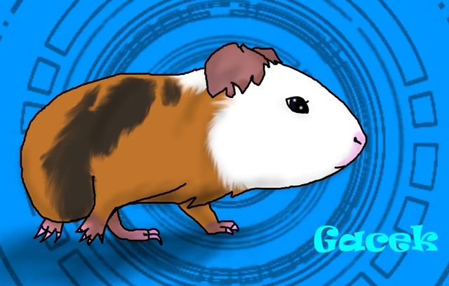 Gacek to śmieszna świnka.Śmieszna... Hm,to w sumie też,ale bardziej pasuje określenie ciekawska i bardzo,bardzo żywa. Wszędzie wejdzie i wepchnie ten swój trochę za duży zadek :sleepy: Uwierzcie,tragedia z nim :lol: