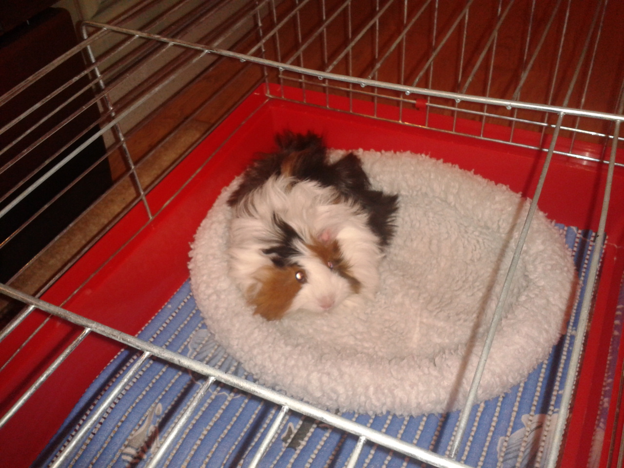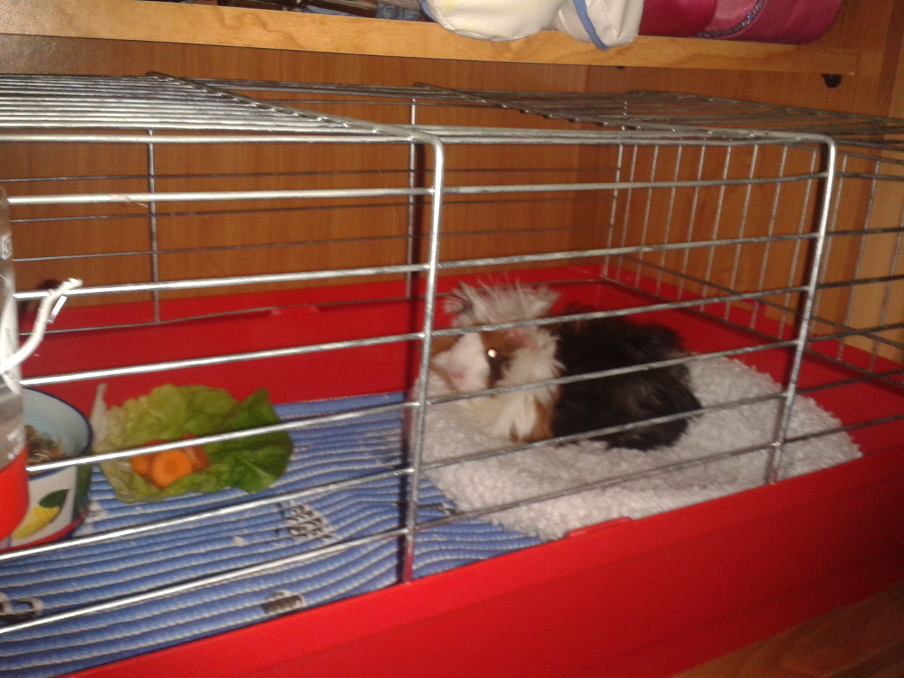 zabrałam małą z klatki dziewczyn bo cały czas siedzi pod półeczką a Lilka zaczęła ją szczypać i ona bardzo piszczała,wychodziła tylko wtedy jak moje dwa żarłoki pojadły i leżały jak placki.Więc tak wygrzebałam na strychu starą klatkę 60 tkę
