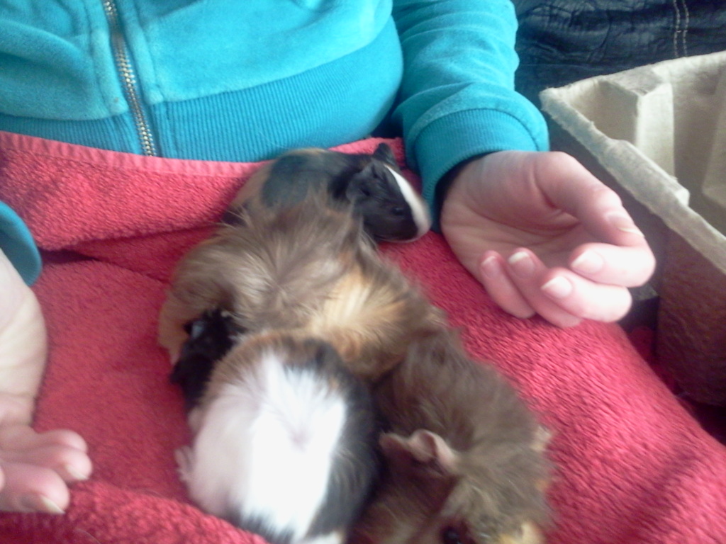 Pisłam już w jednym z tematow, ze moje swinki okazaly sie innnej płci. Przybyly trzy nowe. Wiem, ze nie jestescie zwolennikami rozmnazania swinek , ja tez , wiec staralam sie zapewnic jak najlepsze warunki mamie i malym. Bardzo sie tym przejelam, mysle ze nie mniej a moze nawet bardziej od niejednego hodowcy, ktory liczy sobie ze sprzedazy swinek niezla kaske. Dla mnie liczylo sie dobro ciezarnej swinki i jej dzieci. Nie zalowalam na nic co jest najlepszej jakosci dla swinek. Udalo sie, jestem dumna z nich, wspaniale przybraly na wadze choc byly bardzo malusie.