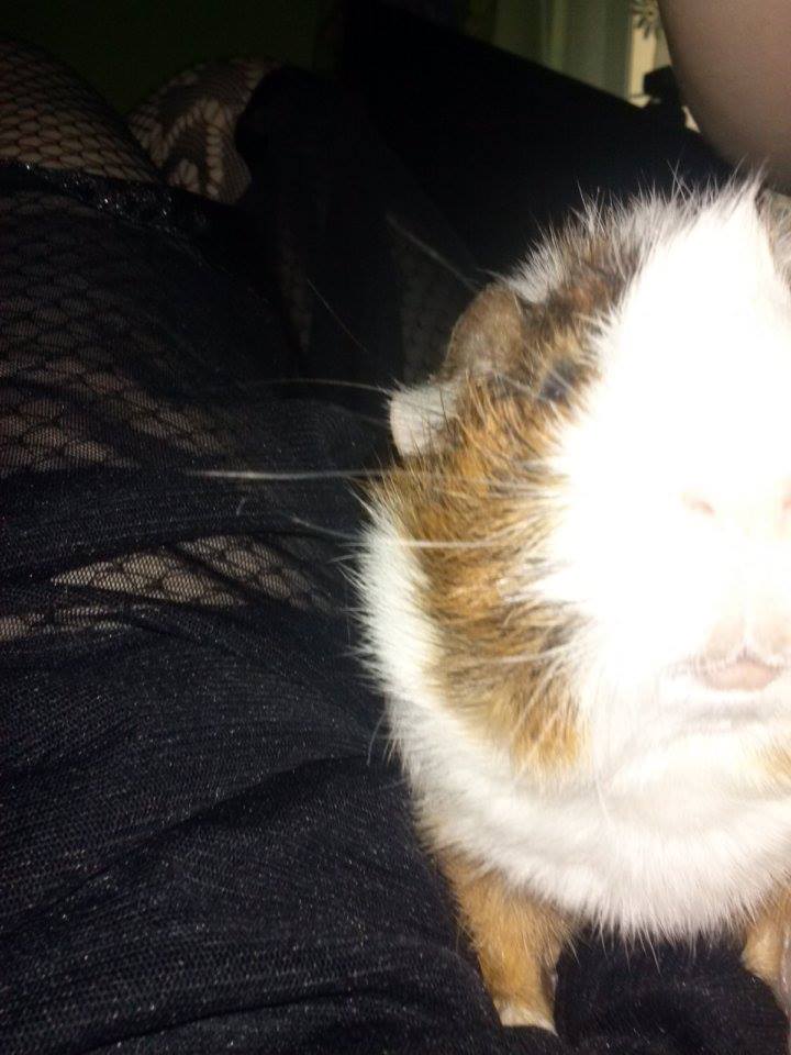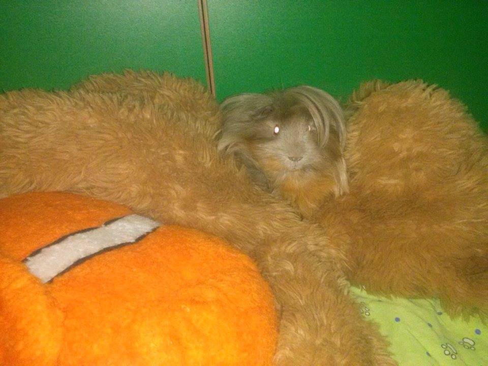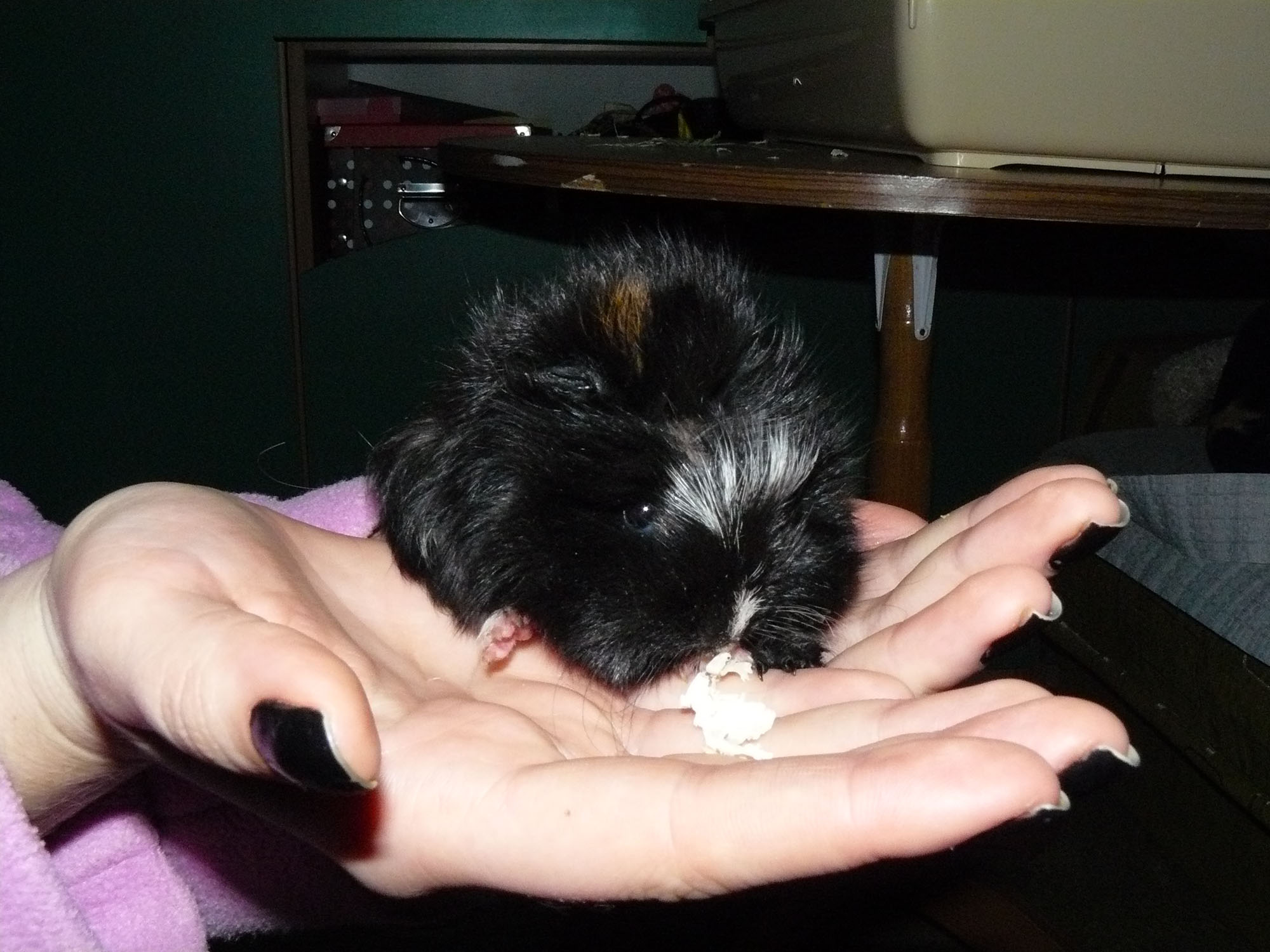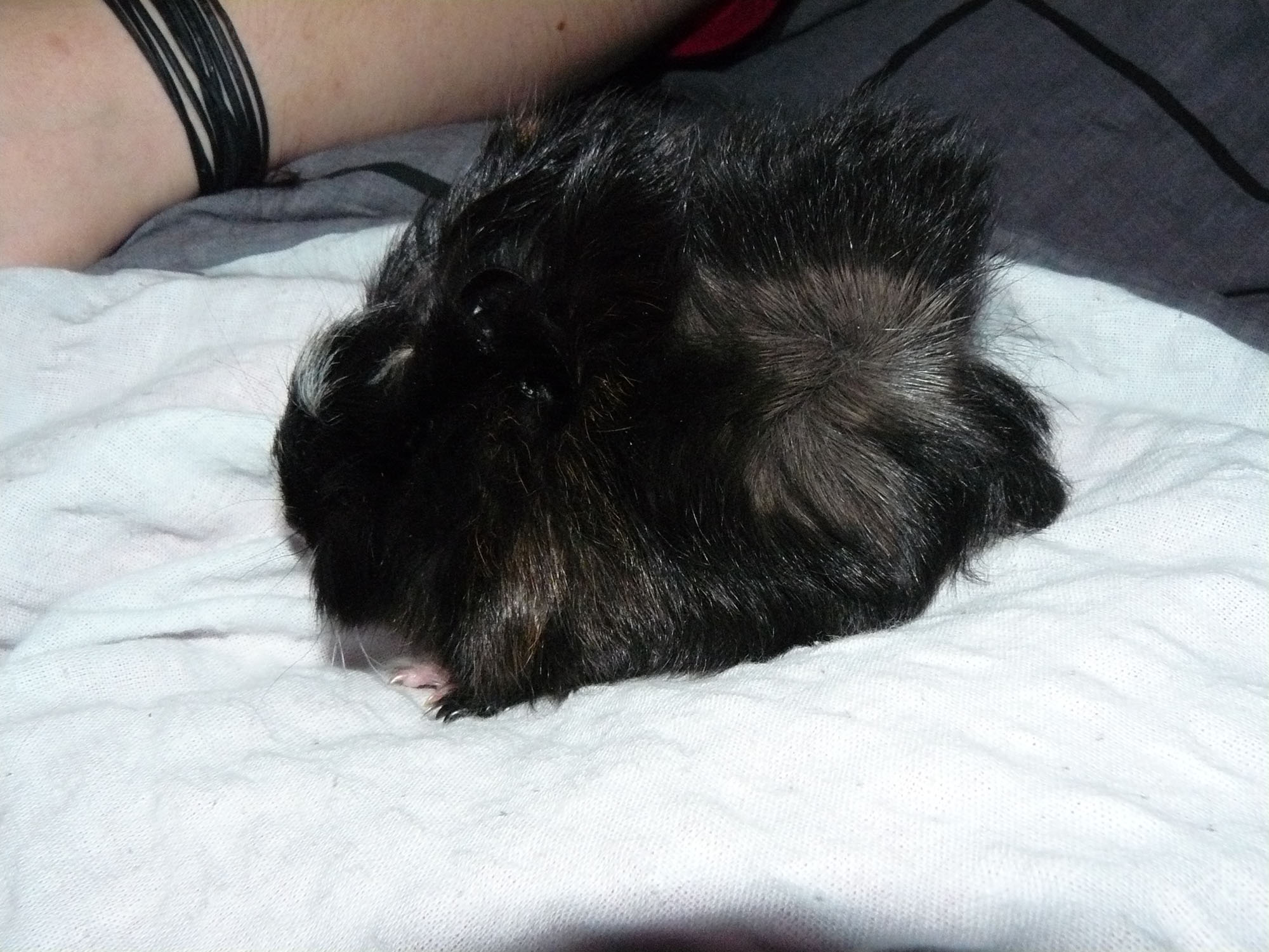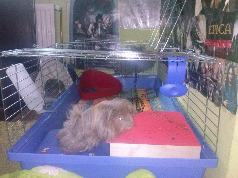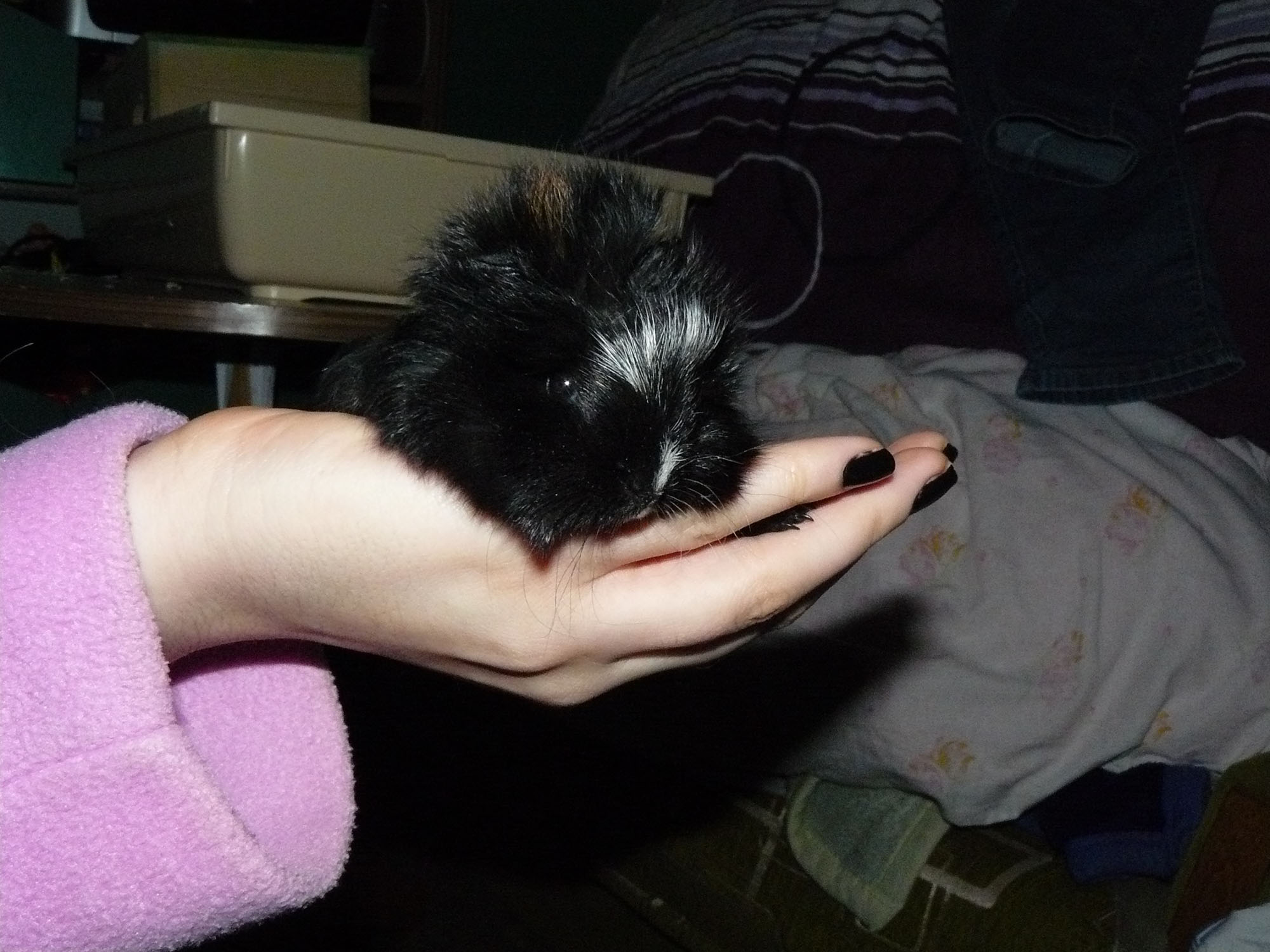 Chciałam się ze wszystkimi podzielić radosną nowiną :D Wczoraj zakupiłam nową świnkę, jechałam po nią kawał świata! Ale jest, mój malutki długowłosy czarnulek. To chłopiec, w sumie cały czas myślimy w domu nad imieniem dla niego, może jakieś sugestie? Moja siostra się upiera na Loki ;) Włożyłam go do klatki zastępczej czyt. 60 cm, bo taką miałam jedyną dostępną. Moje starsze świnki okropnie wariują i gwizdają jak opętane :/ Mały jest przerażony, schował się w sianku i nie wychodzi stamtąd. A teraz ... oto on!