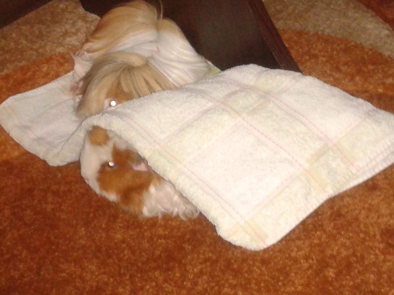 jednak wolę już tam moje kudłate panienki są śliczne zdrowe super się dogadują, powiem ci że jakoś nie zachwyciłam się tymi łysolkami,trchę nawet bała bym się mieć taką świnkę bo one więcej jedzą i więcej brudzą podobno, koleżanka ta która kupiła tę jedną mówiła mi że dużo bobów ma wszędzie po tej śwince,po za tym bała bym się łączenia wiem jak Lilka reagowała na Aspen na początku nie nie .Z ciekawości zaproszę kiedyś koleżanę do mnie na chwilę zobaczymy jak świnki się spotkają jaka będzie reakcja