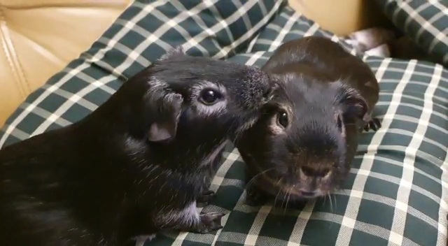 Cześć wszystkim! Mam 2 świnki morskie, braci Gucia i Zyzia. Mają one półtora roku. Zyzio ma brzuszek i podbródek biały, a resztę czarną. Gucio ma tylko zamiast białego rudy.