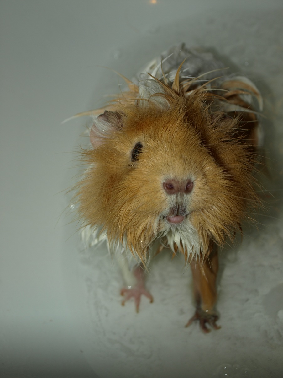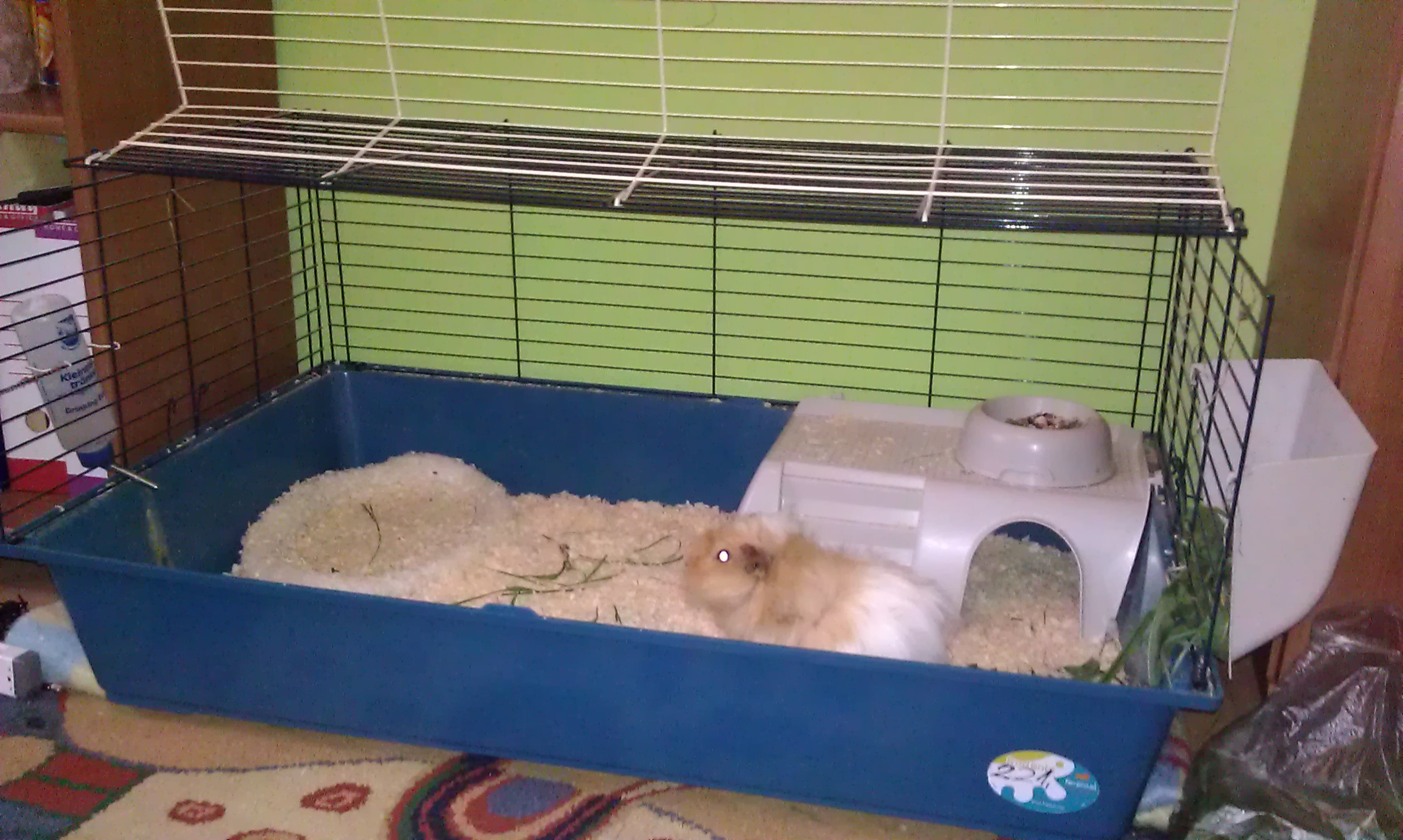 [quote="kin28"]Piękna świnka :) Witam na forum, ale czemu kąpałaś Pusia? Na zdjęciu w wodzie ma długie pazurki... Jaką ma karmę i klatkę?