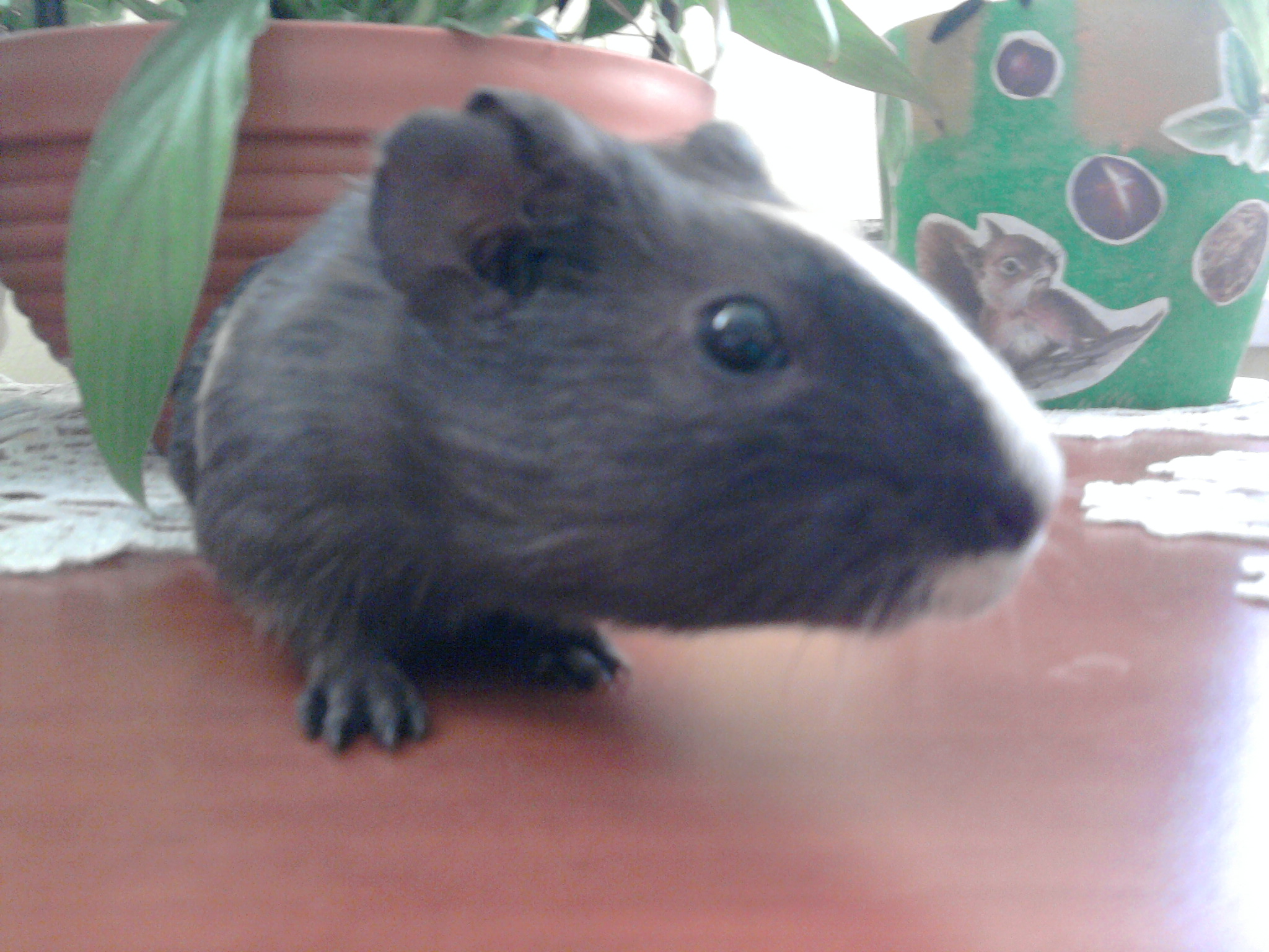 Na początek Chobiczek,lubi jeść warzywa i owocki a najbardziej sałatę.Uwielbia biegać z Chobcią(za tęczowym mostem)teraz będzie biegał z Princem heh,tag że lubi spać podczas czego rozkłada się na pół klatki.Chobolek jest Rozetkiem(najprawdopodobmniej mieszanką)Zwany tag że Chobol,Bobol,Chobi,Chobiczek,Chobik i Murzyn. Jest niezłym rozrabiaką i siłuje się.....n a jabłko!