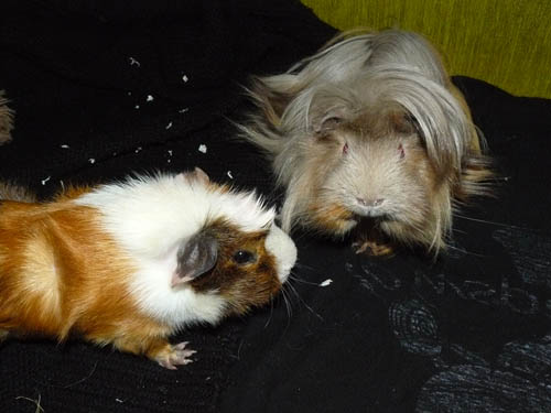 Moje dwa rozrabiaki to Fafik (peruwian) i Orzech (rozeta). Fafik jest starszy, bo ma już 10 miesięcy, natomiast Orzech jest o caaały miesiąc młodszy Prosiaki podbiły serca domowników, w tym psa! Mówimy dzień dobry!