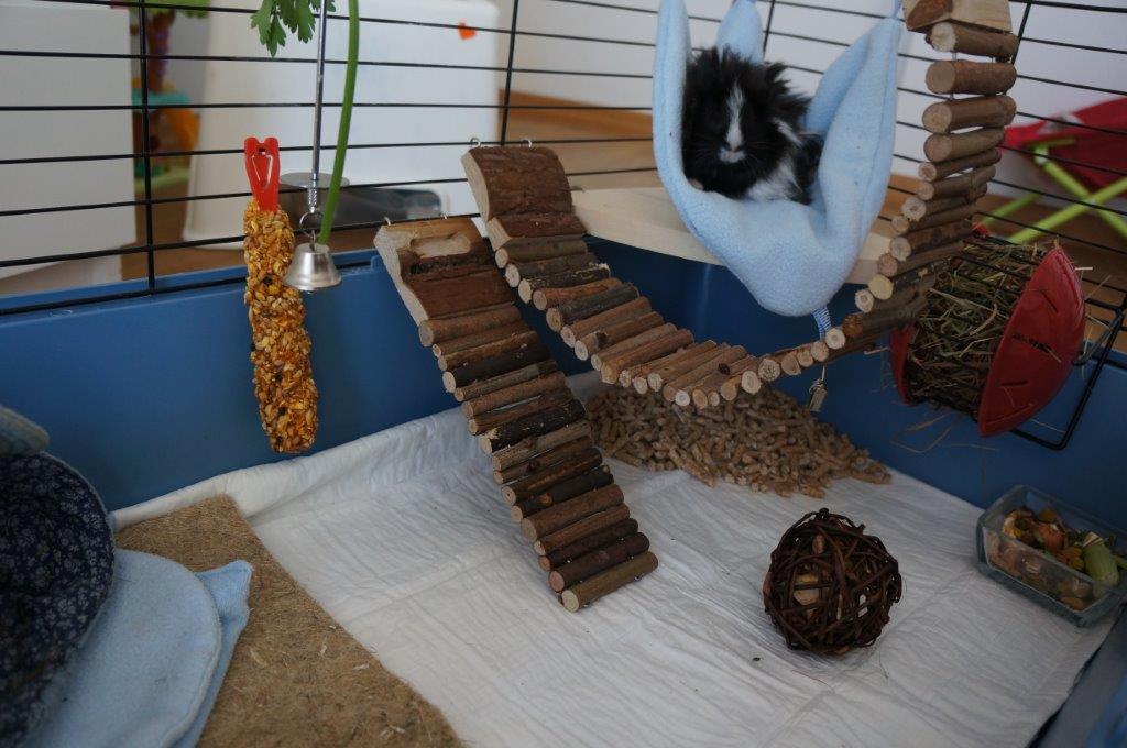 Jeżeli klatka to 80-tka to bardzo dobrze, jest to uniwersalny rozmiar dla knurków :) Bardzo ładnie ją urządziłaś