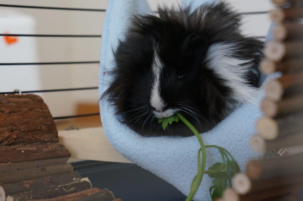 Poza tym chętnie je VERSELE-LAGA Cavia Nature, sianko i susz owocowo-ziołowy.