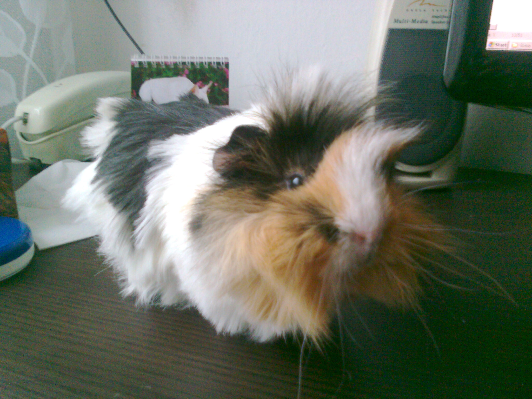 Cudna świneczka. Ma pół roku, a całkiem już długie opieprzenie. Ja mojego Fafa kupiłam również pod wpływem impulsu. Teraz mam cztery świnki :) Czym ją karmisz? Jaką ma klatkę? :D