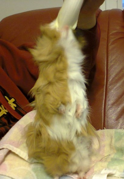 Jest uparty, ciekawski i niestety zawsze dostaje to czego chce.. Pasja Fryderysia to jedzenie, wylegiwanie się i bobsonowanie.. Uwielbiam jak podczas miziania, rozpłaszcza się na naleśnika. Mieszka w swojej 100 cm willi z pięterkiem i hamaczkiem. Odnośnie suchej karmy to tylko i wyłącznie Versele Laga Cavia Nature, innej niestety nawet nie tknie. Jest cudnym świnkiem! A to jak wygląda przedstawiają zdjęcia, są z różnych okresów życia naszego Fredzia.