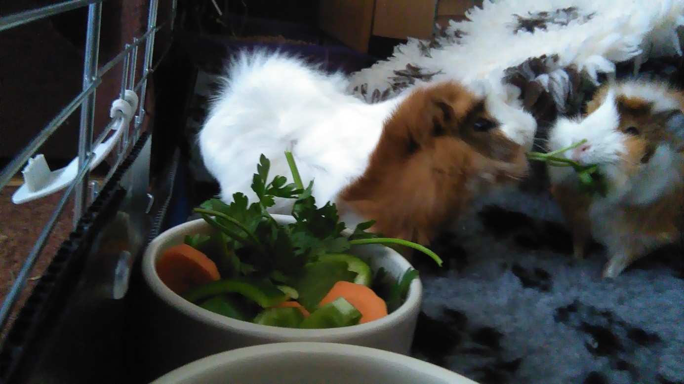 Świneczki w klatce nie zwracają za bardzo na siebie uwagi. Nie gryzą się, ale miłości też nie ma. Za to na wybiegu ładnie się razem bawią. Ganiają się, popkornują, albo chodzą za swoimi kuperkami :tooth: . A najbardziej lubią jak siedzę pośrodku a one biegają w kółko mnie sprintem, od czasu do czasu wskazując i zeskakując mi z kolan (ja też to lubię :lol: ).