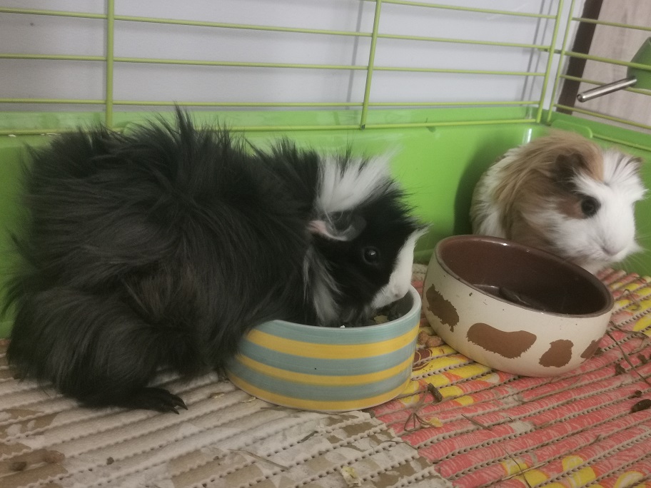 Świnki w klatce bardzo pozytywnie reagują na człowieka, podchodzą do niego, dają się głaskać w klatce, sama ręka w klatce nie stanowi problemu, Rudy potrafi nawet wyjść na ręce. Gilbert jest nieco wycofany, ale za jedzenie zrobi wszystko, więc też pozwala na dużo będąc w klatce.