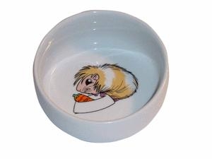 Kiedyś moja świnka miała metalową,pojemną miskę.Miska zardzewiała(bo świnka mądra do niej nasikała...)i ją wyrzuciłem.Nazajutrz kupiłem nową porcelanową miskę dla świnek: