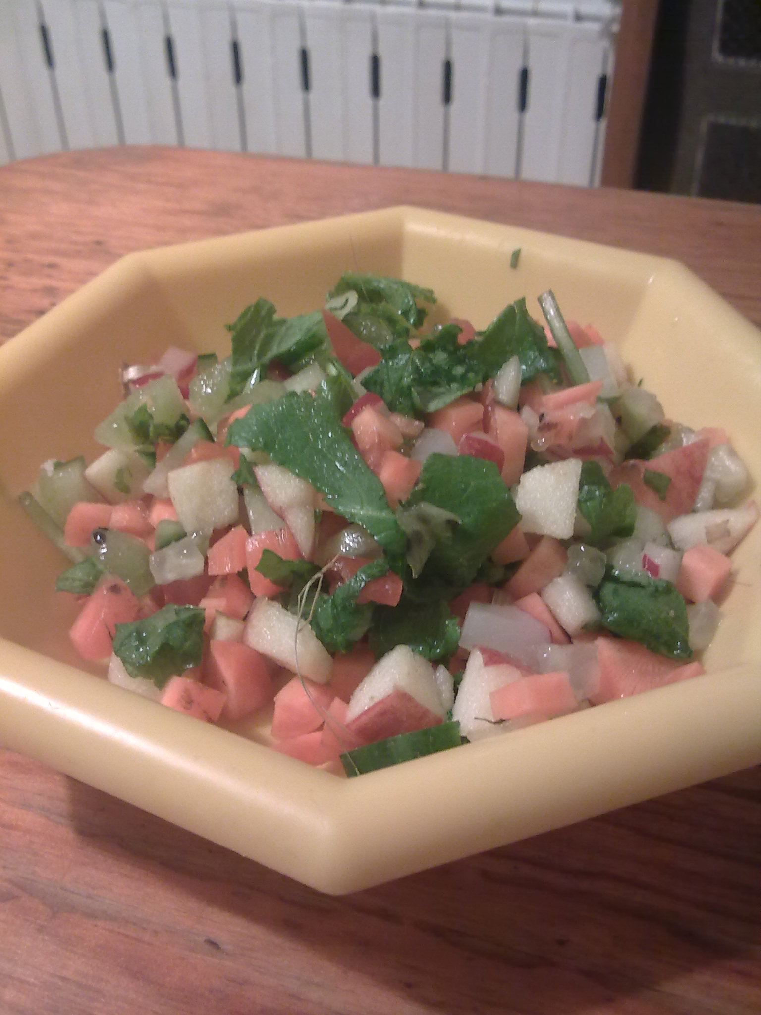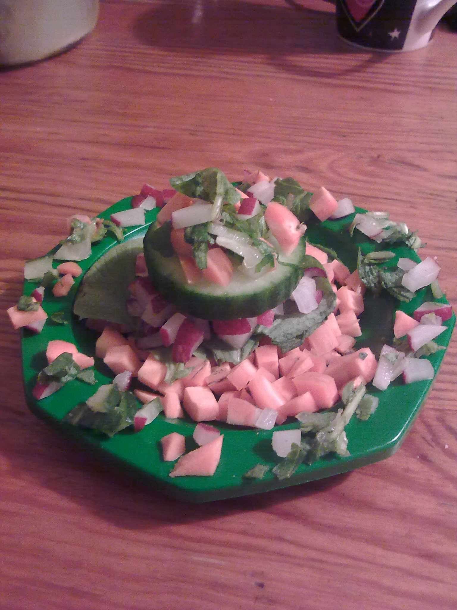 Wszystko umyć ,pokroić i włożyć do miseczki.