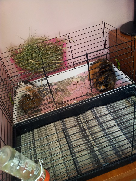 Jestem zmuszona do samodzielnego wykonania tej mega klatki, połączenia, pospinania klatek, zrobienia pięterka... Powiedzmy, że złączenie nie jest ponad moje możliwości, ale... jak zrobić pięterko z 90 cm. klatki?... Jak zrobić wejście na pięterko świniaczkom?... Od jutra biorę sie za łączenie - do pomocy mam tylko 12 letniego syna i 7 letnia córcię, no i dwie dziewczyny w klatce