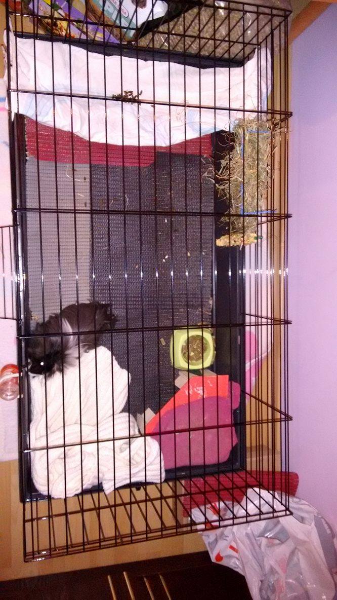 Ta klatka też jest świetna, taka przytulna :) Ja żałuję, że nie mogę otworzyć klatki tak "na stałe", by świnki sobie mogły w dowolnej chwili z niej wyjść :(. Klatka stoi na antresoli, bo w dolnej części pokoju nie mam miejsca, by ją postawić. W dodatku wynajmuję pokój, więc jakby świnki coś zrobiły, to mógłby być problem...