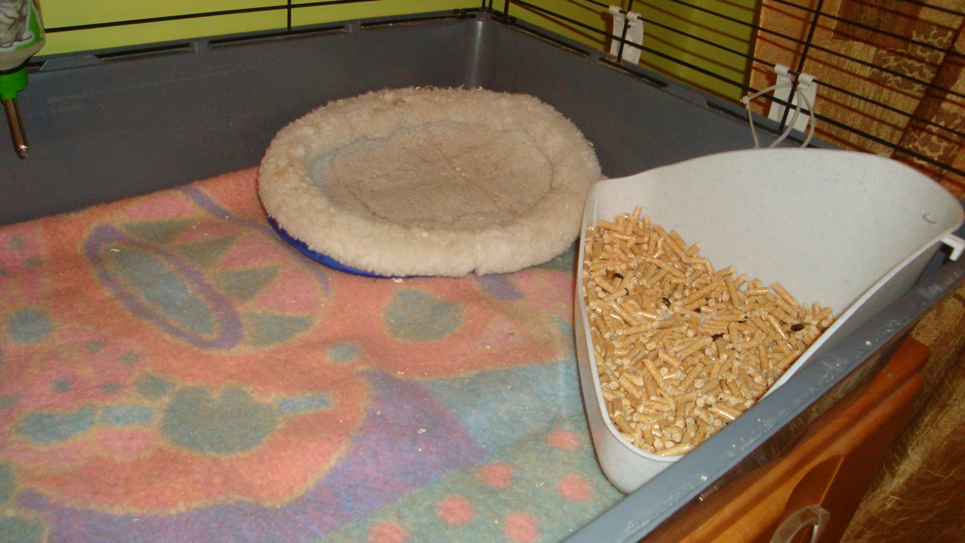 Kin - super,jak przytulnie ;3 Więcej miejsca widzę.Będąc świnką chciałabym tam mieszkać ;* A co to za podłoże?