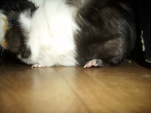 Hej.Mam do was pytanie. Czy z tylną łapką mojej świnki jest wszystko okej? Bo mam wrażenie że jest podniesiona gdy siedzi i nie wiem czy to normalne.Jak myślicie?