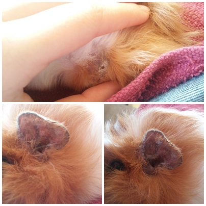 4. z tyłu, w miejscu, gdzie u innych zwierząt znajduje się ogon, ma duży, średnio-gruby, trochę jakby łuszczący się i rozdrapany (ale jak?!) łysy placek.