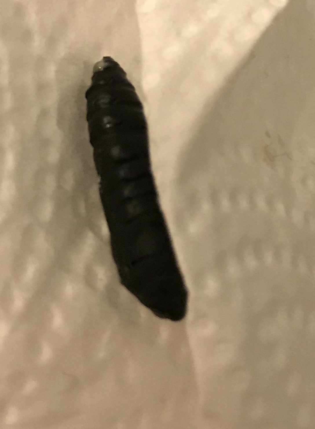 To nawet wygląda jak larwa/poczwarka, ale to było na 99% wydalone przez świnkę - był na tym kał a w miejscu gdzie się "pojawiło" było mokro, ale nie na tyle, żeby to był mocz