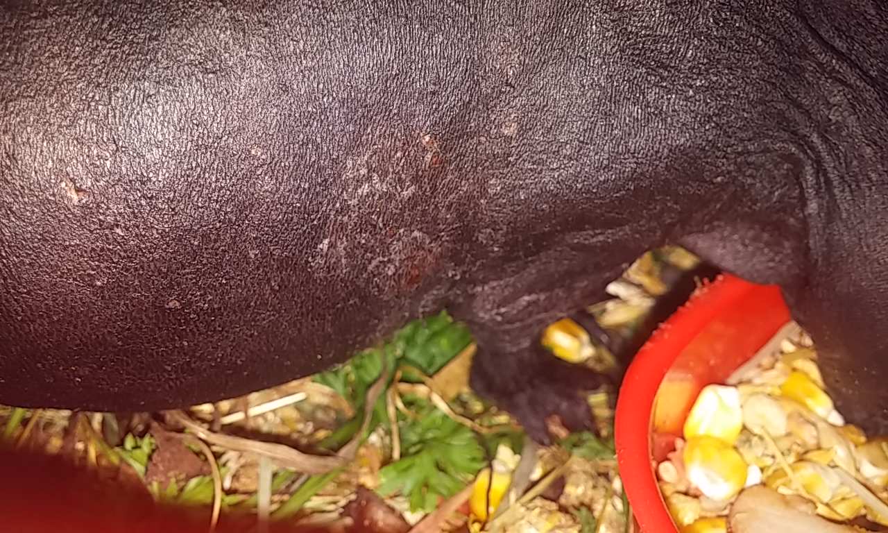 No wczoraj bylem u weterynarza .prawdopodbnie grzyb.narazie kapielnw szamponie przeciwgrzybicznym i smarowanie mascia z wit A . nic nie moze wiecej zrobic zadnego zastrzyka poki jest w ciazy . czyli jestem bezradny na dzien dzisiejszy . jeszcze z 2 tygodnie