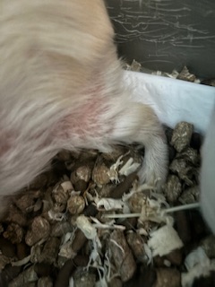Nie wygląda to dobrze, jak najszybciej trzeba pojechać do weterynarza, tym bardziej że świnka jest apatyczna i nie chce jeść. Świnki muszą stale przyjmować jakiś pokarm bo mogą dostać śmiertelnego w skutkach wzdęcia, dlatego zawsze w takiej sytuacji stosuje się dokarmianie karmą ratunkową do pyszczka przez strzykawkę (oczywiście bez igły) kilka razy dziennie. Zazwyczaj świnki kupione w sklepach zoologicznych cierpią na jakieś choroby skórne, np. grzybicę lub nawet świerzb, niestety nie można tego zdiagnozować bez wykonania odpowiednich badań. Doraźnie możesz dokarmiać świnkę, jeżeli nie masz karmy ratunkowej to można zrobić papkę z karmy jednorodnej i podawać do pyszczka oraz kupić internetowo np. Dr Ziętek
