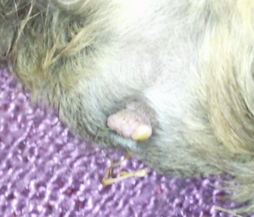 Dzisiaj zauważyłam u mojej świnki ciemnokremową narośl w okolicach odbytu.