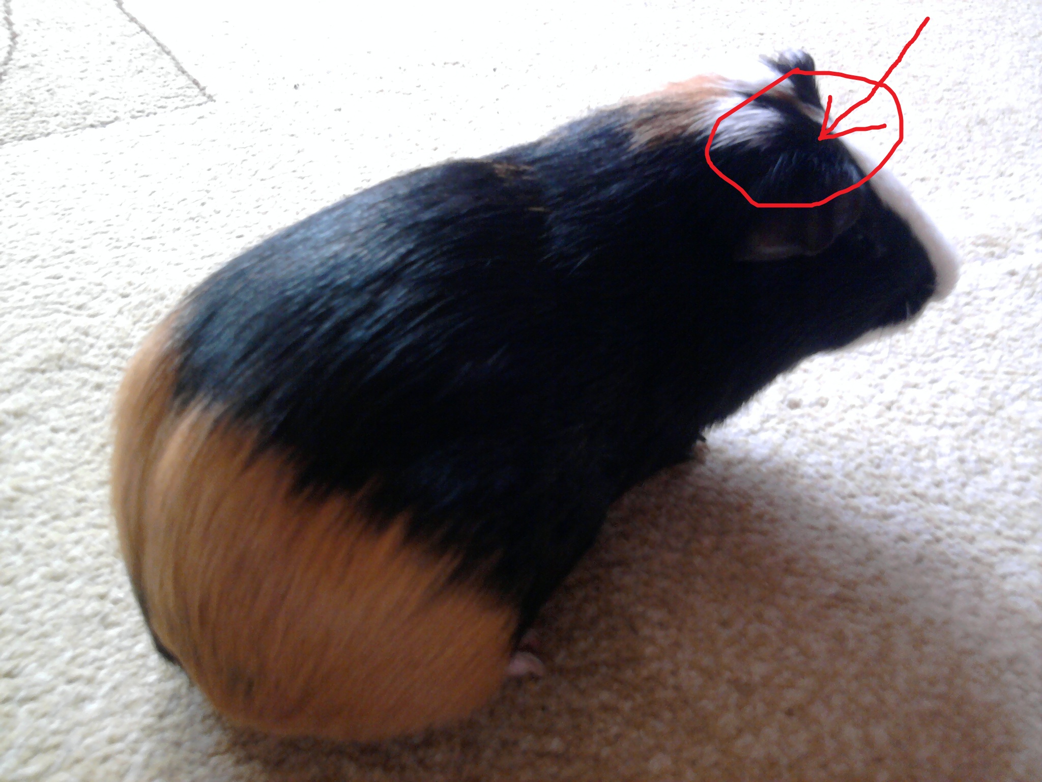 Dzisiaj zauważyłam u Lucky'ego malutką łysą plamkę. A konkretniej koło uszka, na główce. Jest to taka mała łysa plamka, obok jest naderwana skóra z sierścią. Na środku tej plamki jest taki jakby jaśniejszy płatek (taki biały). Tato powiedział, że to strupek, bo możliwe, że Kubuś go ugryzł (:<), biegali razem na polu. Boli go to, bo jak to oglądaliśmy i trochę sierść odgarnęliśmy to zaczął robić gwałtowne ruchy (chciał się wyrwać). Powiedział jeszcze żebym poczekała kilka dni, może się zagoi, a jak nie to do weta pojedziemy. Nigdzie indziej tak nie ma.