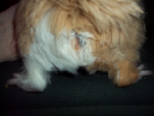 nie, to samiczka. czy to coś zmienia? czytałam gdzieś, że może smarować to clotrimazolum, ta rana jest dziwna w dotyku, twarda, nie jest taka jak reszta jej skóry.
