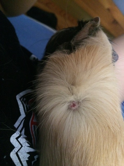 Dzisiaj rano wzięłam świnkę morską na ręce i zaczęłam ją głaskać, po czym poczułam strupa, (czarnego wystającego)