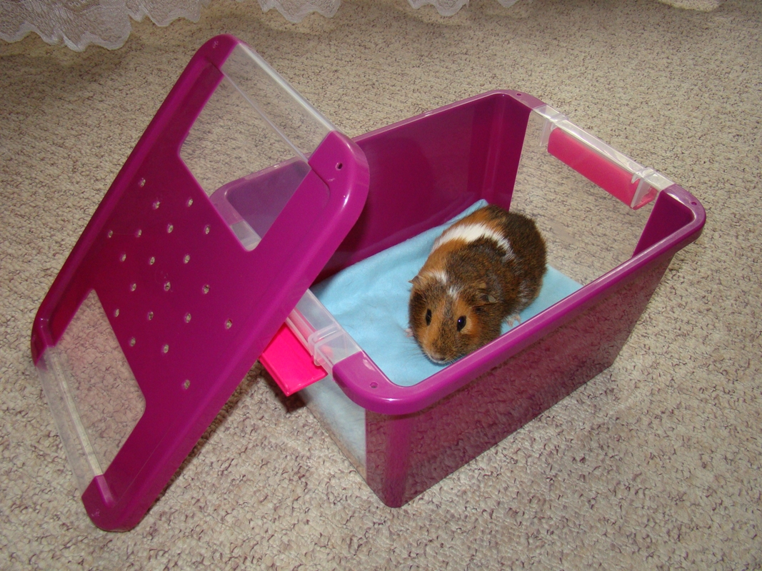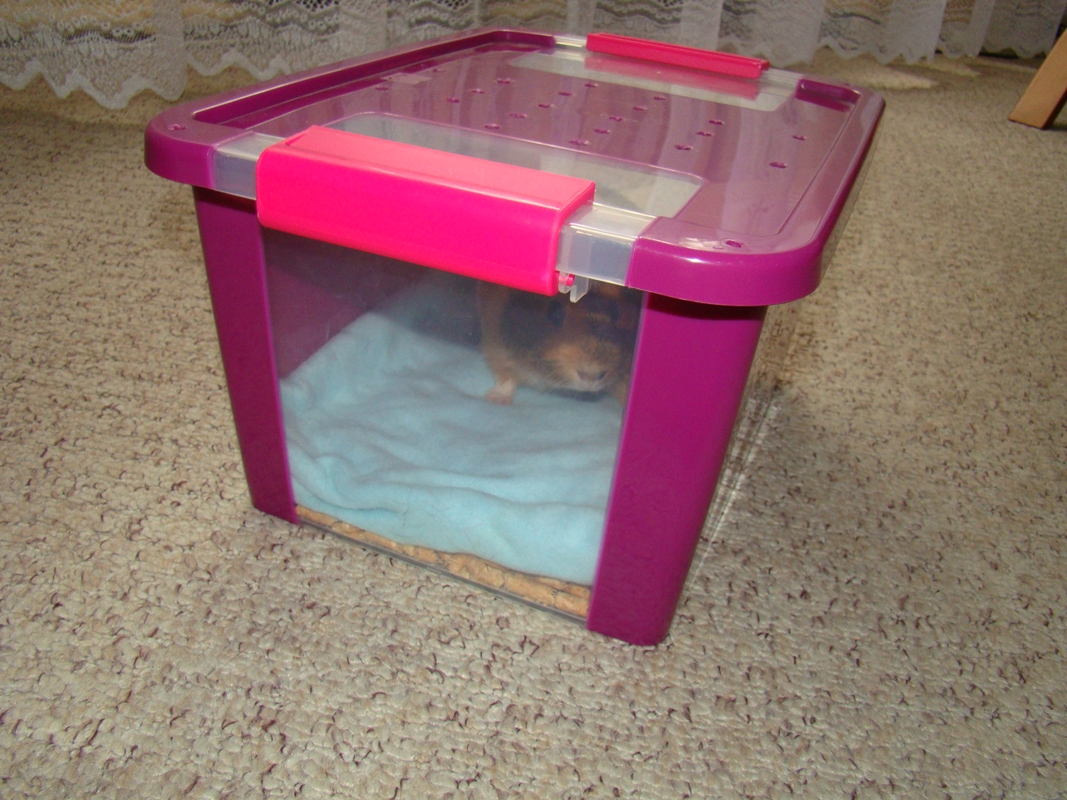 W którejś ze ścianek można też wywiercić otwór na poidełko i przymocować je od zewnętrznej strony... Napakować sianka do środka i transporter gotowy :).