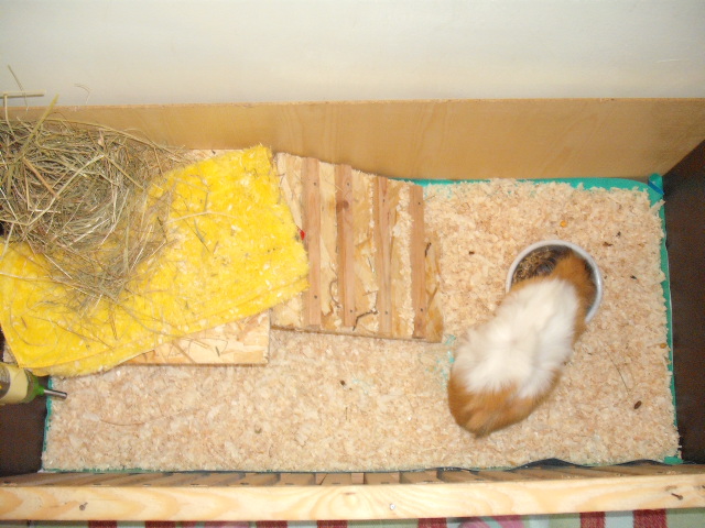 Uważam, że własnoręcznie zrobiona klatka jest dobrym rozwiązaniem - szczególnie, kiedy mam świnkę w małej klatce. Żeby ograniczyć liczbę niepotrzebnych postów o treści:"Jak możesz trzymać świnkę w taj małej klatce?" to powtórzę - kupiłam świnkę, ponieważ facet kupował ją dla węża, dlatego w tak małej klatce. Zakup zaplanowany nie był, a więc klatka też malutka.