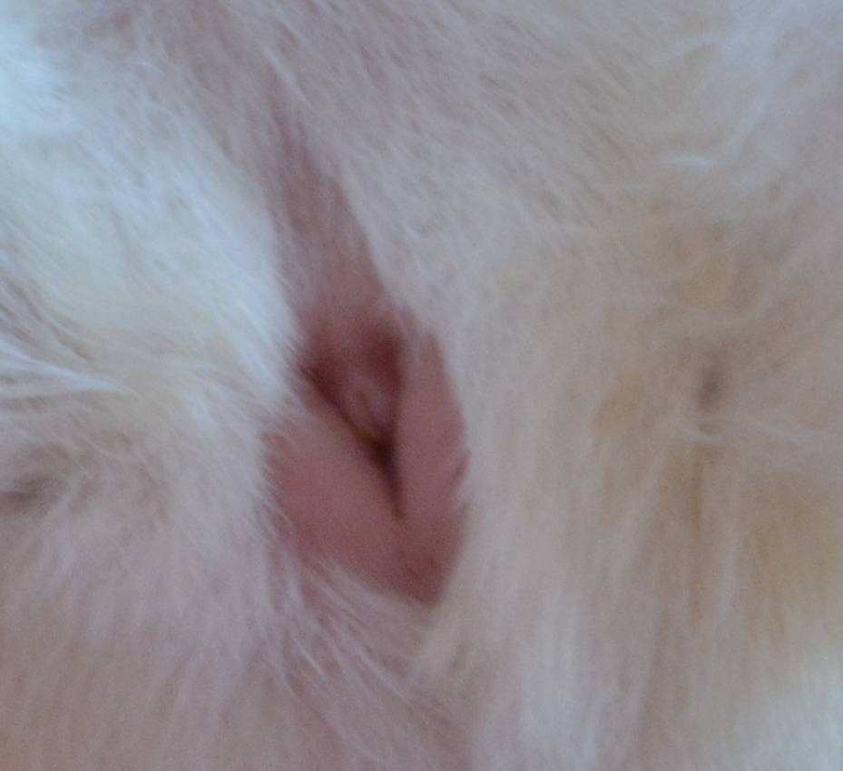 Jesli mozesz zrob zdjecie od gory, a nie wtedy kiedy prosiek przygniata zadek, bo z obecnej perspektywy wyraznie widac, ze to samiec.