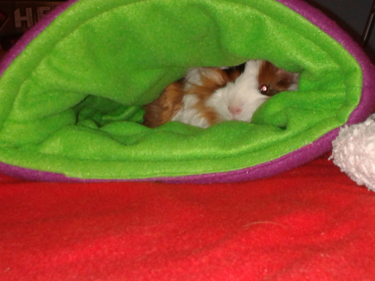 Witajcie,po paru dniach obserwacji i naczytaniu się tak dobrze połączyć świnki które nie pałają szczególną sympatią do siebie postanowiłam zrobić moim dziewczynom totalne przemeblowanie pranie i kapanie wszystkiego co ma z nimi styczność.Klatka została cała dobrze wymyta nawet część z prętów ;) ,wszystkie akcesoriapoidełko miseczki półeczka legowisko zostało wyprane,dziewczyny wykąpane przy okazji podcięłam im pazurki no i maja nowe fryzurki :) następnie wszystkie trzy trafiły do dużego kartonu gdzie siedziały chyba ponad godzinę aż ja przygotuję i przemebluję im klatkę, następnie dostały wspólny posiłek i klatka została wyniesiona do innego pokoju gdzie jeszcze nie była nigdy. No i muszę przyznać że chyba pomogło,Lilka razem z "czupurkiem" razem jadły i nawet razem leżały w norce żadnych spięć już niema ,może już mojej loczce przeszło ustawianie młodszej koleżanki :) bo Cindi nie protestuje nadal jej w ogóle nic nie przeszkadza ale ta moja Lilka to mały wredziuch, tak podgryzała małą że teraz ma ubytki w futerku na doopce :tooth: wrzucam kilka zdjęć popatrzcie :)