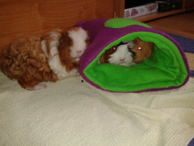 hej,troche nas ostatnio nie było na forum ale to dlatego że ostatnio brakuje mi czasu na wszystko.Jednak chciałam Wam kogoś przedstawić :P Od dwuch tygodni mieszka z nami sliczna gładka dziewczynka o imieniu Micra :rotfl: Świneczka jest z hodowli PiggyBoo,jest strasznie łagodna śliczna no i taka biszkopcikowa i jakiej marzyłam.MOje dziewczynki przyjęły malutką bardzo dobrze,niema żadnych zgrzytów ani spięć.Cała trójka razem śpi,je i bryka gdzie tylko się da a oto kilka zdjęć :)