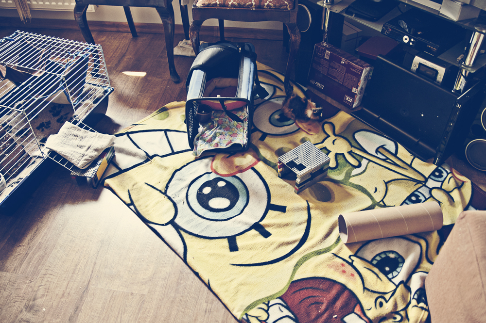 moje świnki mają do dyspozycji tylko pół pokoju ze względu na kable, które znajdują się w drugiej części, a ze względu na wynajmowane mieszkanie nie mam innej możliwości