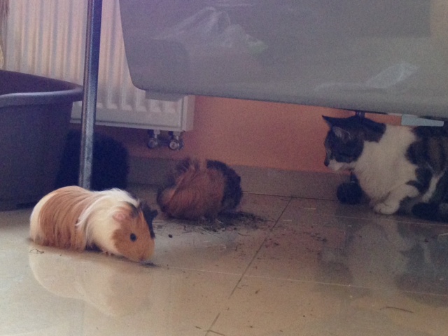 Dziewczyny spacerowały po salonie a kiciuś Feluś bacznie je obserwował. :naughty: