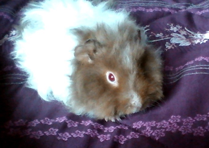 Witajcie, od dziś jest 22 dzień odkąd posiadam świnkę morską Lunę :D jest ona mieszanką Mohera z czymś innym (ma kręcone włoski na brzuszku). Mój kochany wieprz ma niecałe dwa miesiące :tooth: niestety ma chyba grzybicę przy nosku, niedługo idziemy do weterynarza ;/ bo ma biały nalot i strupy. Wkleję wam zdjęcie Luny ;)