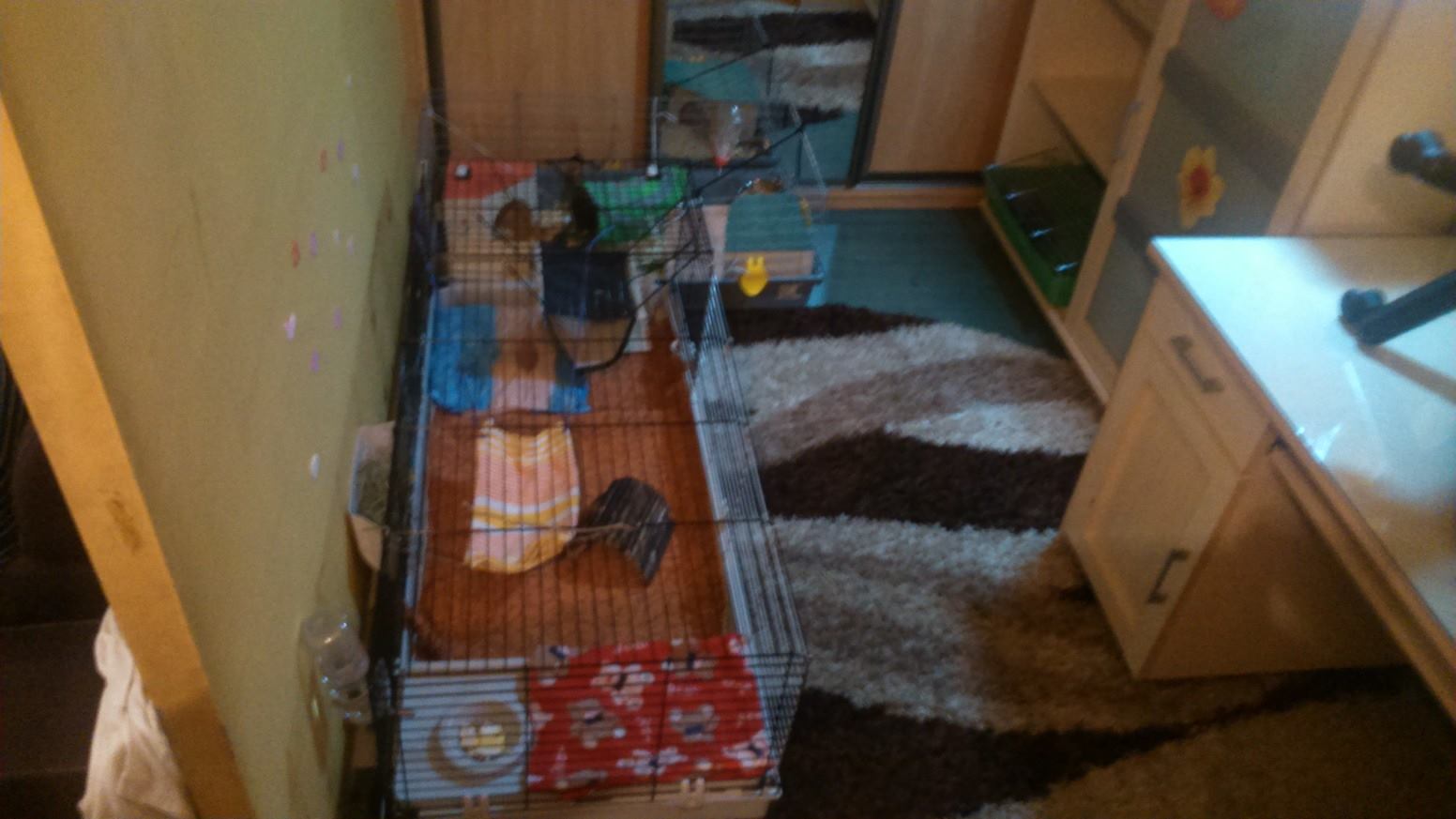 No i tym sposobem JESTEM :). Z torebki po cukrze trafiłam do wieeeelkiej klatki pełnej domków, norek, hamaczków, zabawek, tunelików i... jedzonka :).