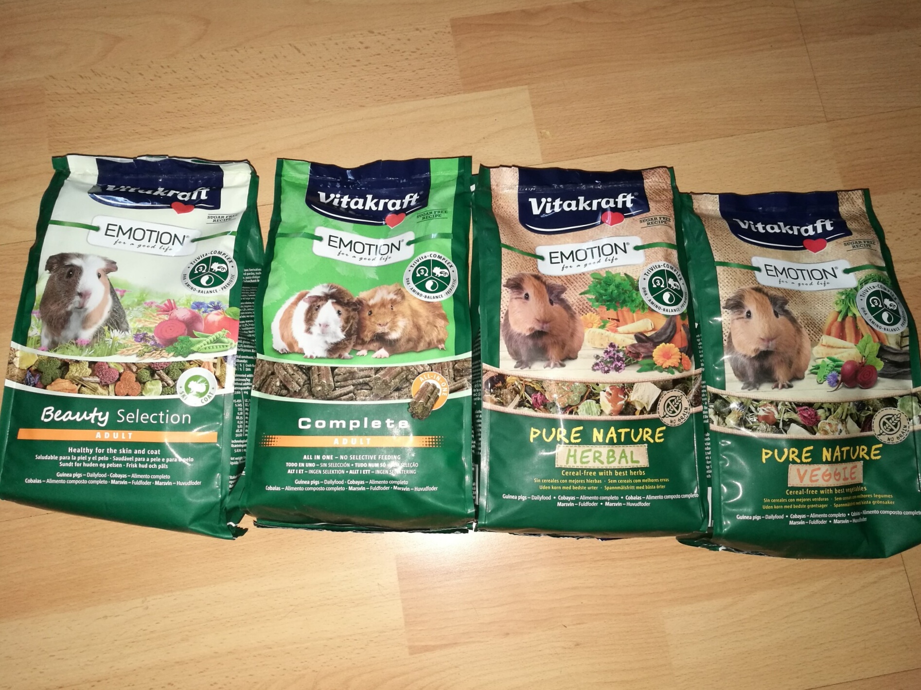 Ja chwilę używałam którejś z tych Emotion- były tam takie zielone kule, lubiłam je - jako taki od czasu do czasu zamiennik z Versele Laga Nature, ale po wielkim chorowaniu moich świnek i konsultacjach w lecznicy specjalistycznej używam poleconej przez nich Versele Laga Complete, a od czasu do czasu dodaję Beaphar Nature, a ma on skład bardzo fajny, jest dodatek oregano np. Trudno mi coś powiedzieć, cena tych karm jest porównywalna z VL Nature, ale faktycznie dobrze by znać skład, a poza tym jak już tak jesteśmy akuratni to może trzeba się trzymać sprawdzonych marek dla naszych vip