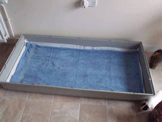 Ok, wiec posprzatane,pisze tu bo w efekcie koncowym do maty lazienkowej sie ten post sprowadza.Klatka przygotowana na jutro na mate lazienkowa,najpierw umylam domestosem mieszanym z octem,wyszorowalam szczotka i dokladnie splukalam goraca woda,nastepnie szuszenie,podklad seni,na to pellet i...recznik,nie chcialam sypac trocin bo jutro bede miala mate,a ponizej kilka fotek, zeby pokazac jak ciezko pracowalam...