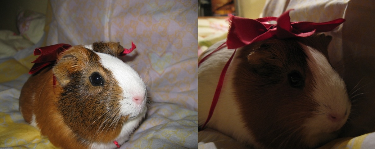 Witam wszystkich! Mam na imię Kasia i już od czterech lat mieszka ze mną moja kochana Koko. Do piątku była jeszcze z nami Tofcia, ale niestety tak nagle odeszła… Nawet nie wiemy czemu – może miała raka? Teraz jest tak pusto, a najgorsze jest to, że wydaje mi się, jakby to był jakiś koszmarny sen, z którego nie mogę się obudzić. Bardzo za nią tęsknię. Koko pewnie też, bo była przyzwyczajona do towarzystwa. Mam jednak nadzieję, że jakoś to będzie i damy sobie radę... Wstawiam też zdjęcia moich prosiaczków (Tofi to ta ciemniejsza)