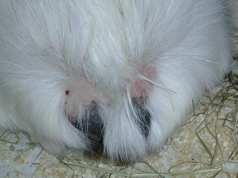 Ja mam podobny problem ... Mój świnek ma też taki jakby łysy placek ale tam jest taka dziwna skóra. Takie jakby dziwne wypustki. Nie dawno to zauważyłam. Proszę o pomoc i ewentualnie o rady ;)