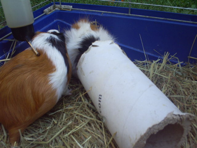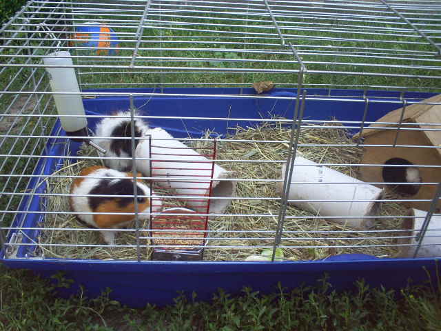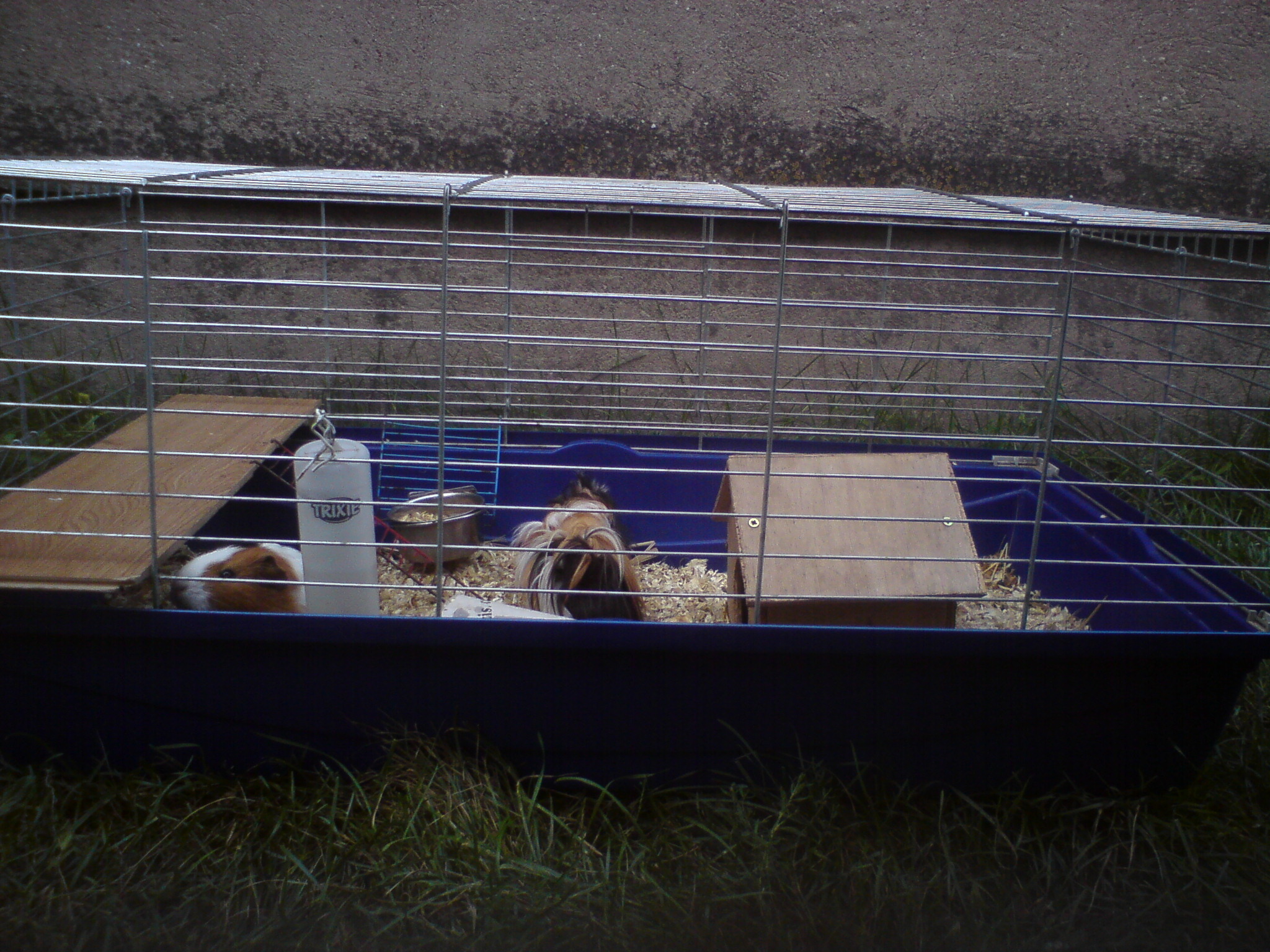 Ale moja klatka ma metr długości, 57com wysokości :/ .-Klatka o takich wymiarach chyba jest domra dla trzech świnek. Chyba tylko na zdjęciach tak wygląda, że klatka jest mała xP . A i one nie mieszkają na sianku , tylko na trocinach .To zdjęcia klatki: