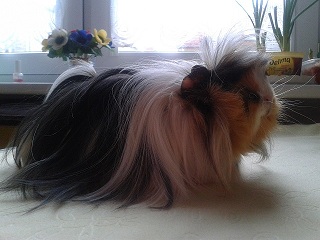 Cudna świneczka. Ma pół roku, a całkiem już długie opieprzenie. Ja mojego Fafa kupiłam również pod wpływem impulsu. Teraz mam cztery świnki :) Czym ją karmisz? Jaką ma klatkę? :D
